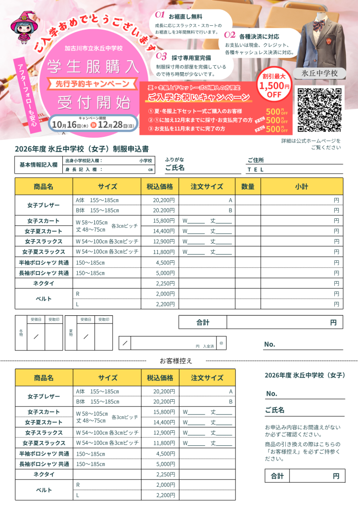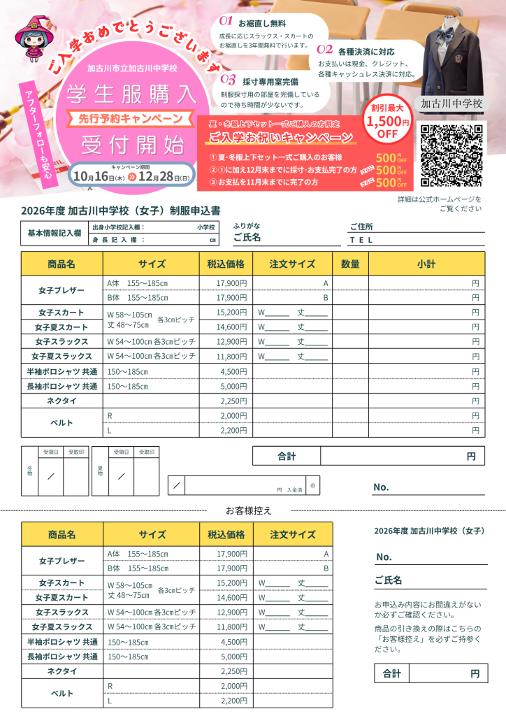 制服早期予約 チラシ